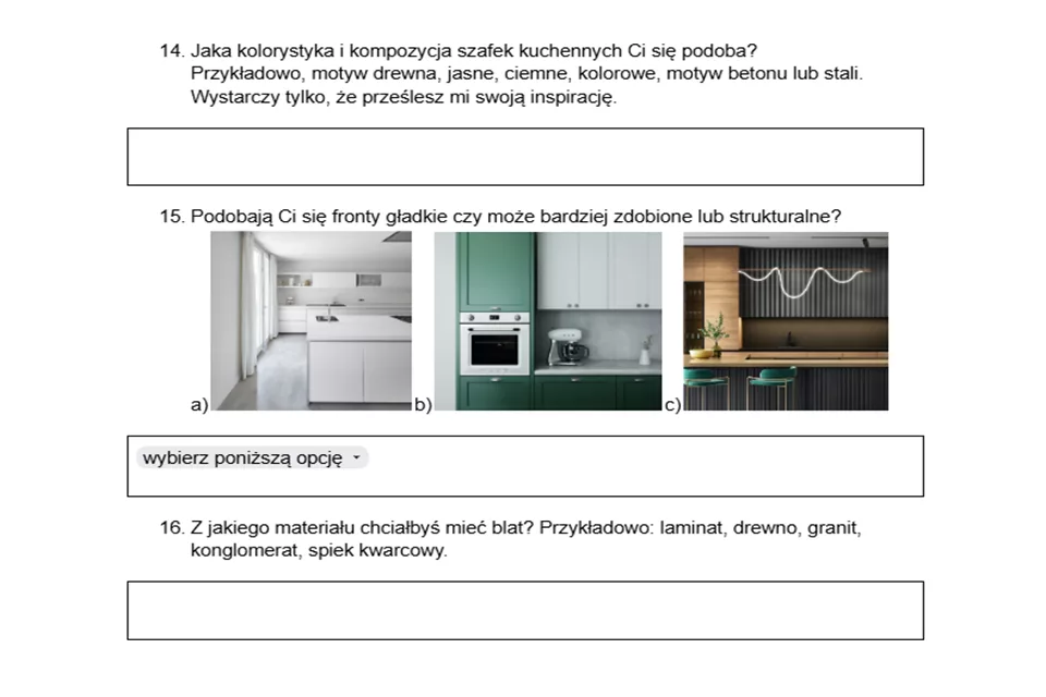 Szczegółowe ankietyprojektowe: Zrozumiem Twoje potrzeby i oczekiwania, aby stworzyć przestrzeń, która będzie idealnie do Ciebie pasować. Każda Twoja sugestia i inspiracja zostanie wzięta pod uwagę, a wnętrza stworzone będą z artystycznym zacięciem przez absolwentkę Akademii Sztuk Pięknych.